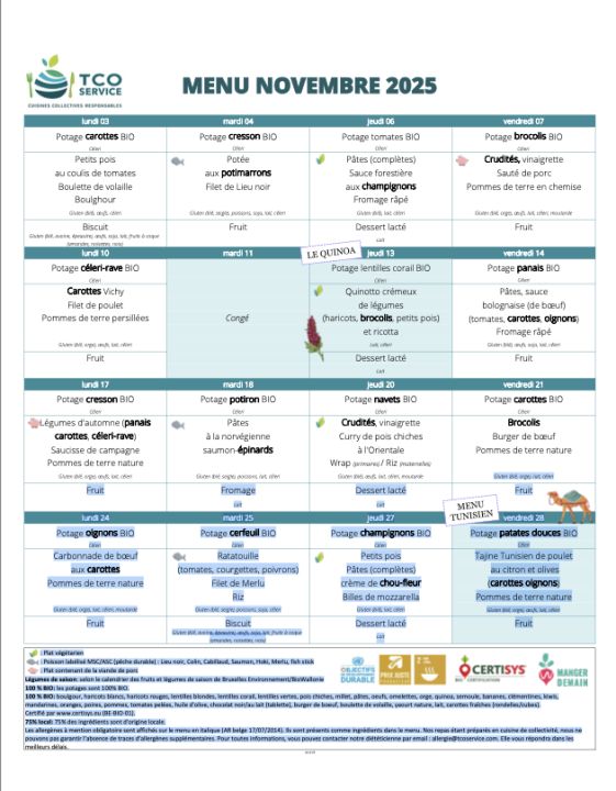 Menu du mois de Novembre 2025